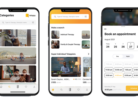 UX/UI: The Telappy interface uses a calm visual hierarchy, warm accents and intuitive navigation to make finding and booking therapy effortless. Clean layouts and human-centred details create a simple, reassuring experience across both web and mobile.